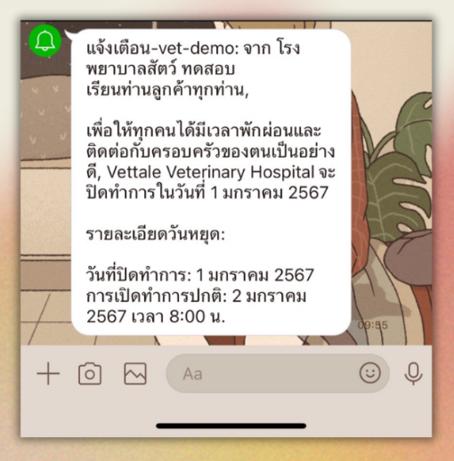 ยกตัวอย่างเช่น ส่งข้อความแจ้งเตือนวันหยุดของโรงพยาบาล
