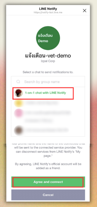 เลือก 1-on-1 chat with LINE Notify และกด Agree and connect