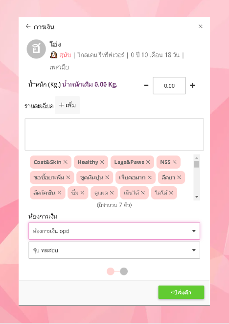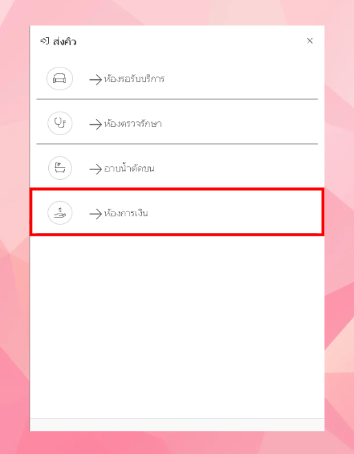 ระบุรายละเอียดและทำการคลิก ส่งคิว >คลิก ไปที่ห้อง
