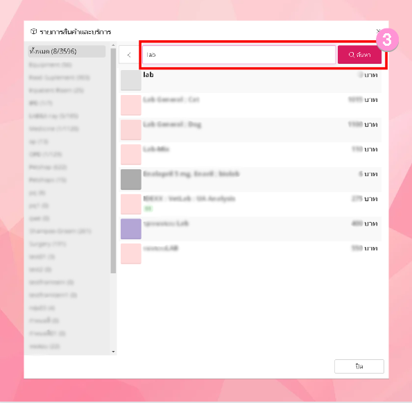 - ค้นหารายการแล็บที่ต้องการสั่ง