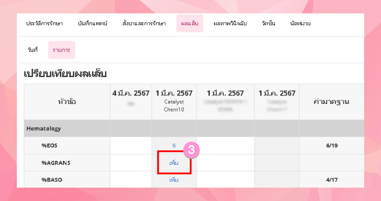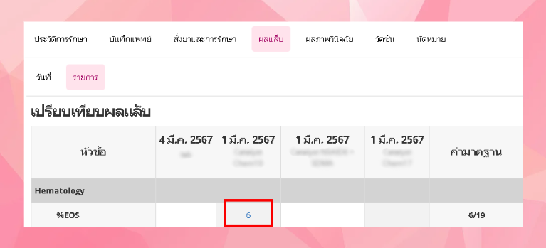 - ระบบจะแสดงค่าผลแล็บที่ผู้ใช้งานได้ทำการบันทึก