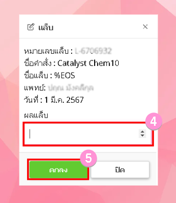 - ผู้ใช้งานทำการผลแล็บ