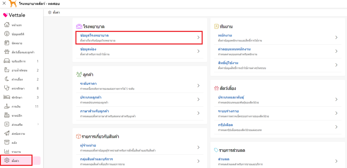 ไปที่เมนูตั้งค่า > ข้อมูลโรงพยาบาล