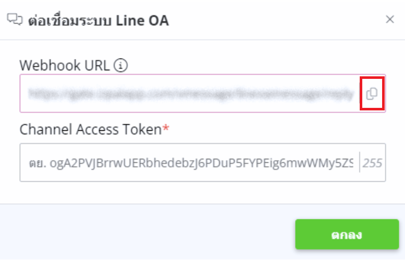 ระบบจะแสดงหน้าต่าง Webhook และ Token ใหทำการกดคลิกที่ปุ่มคัดลอกในช่อง Webhook URL