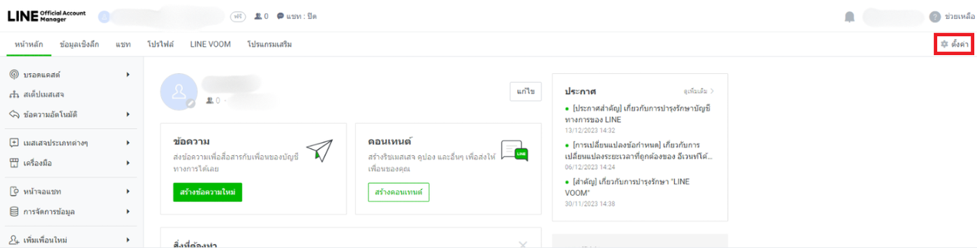 เข้าเว็บ Line Official Account Manager และไปที่ ตั้งค่า