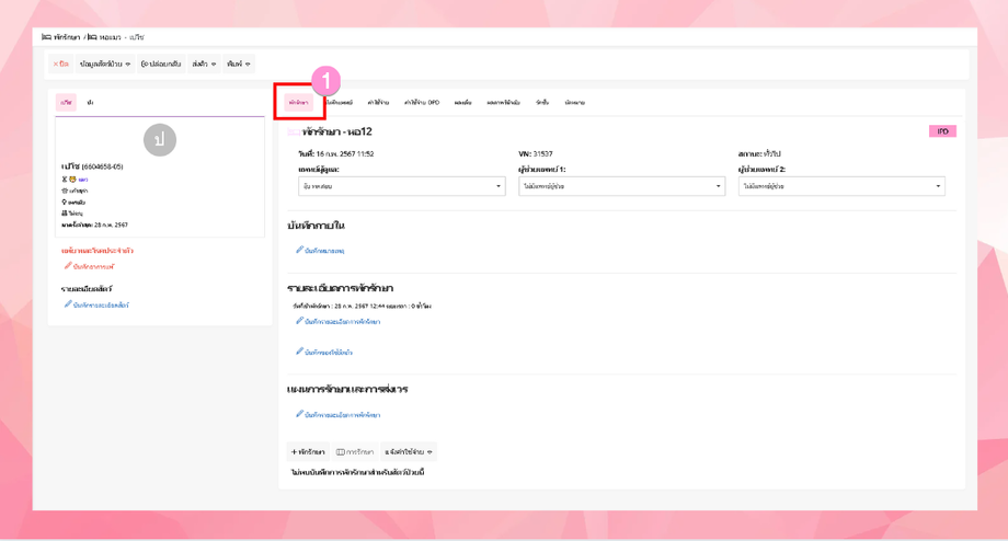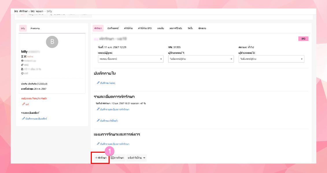 - ระบบจะเข้าสู่หน้าข้อมูลพักรักษา