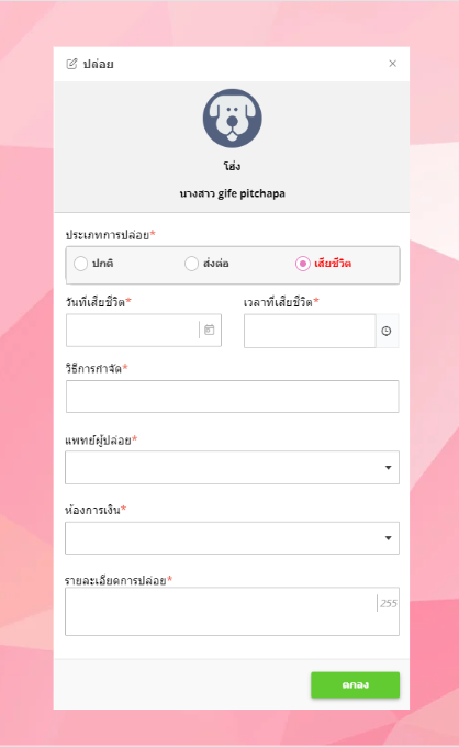 การปล่อยประเภทเสียชีวิต ผู้ใช้งานต้องกรอกข้อมูล ดังนี้
