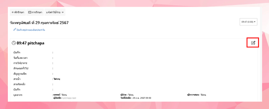 - ระบบจะแสดงวันที่และเวลาที่ผู้ใช้งานกรอก ผู้ใช้งานสามารถแก้ไขข้อมูลได้
