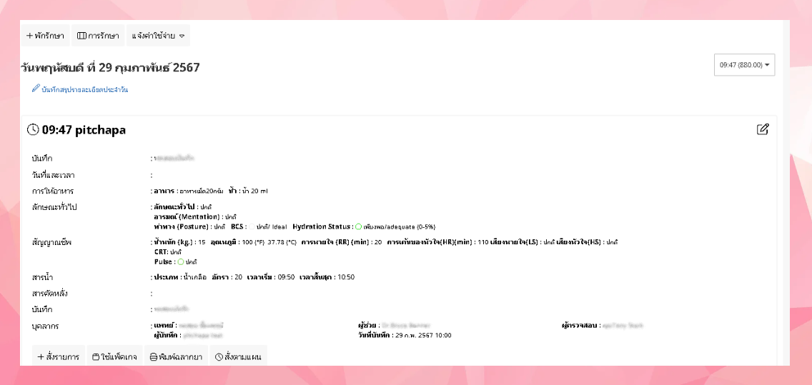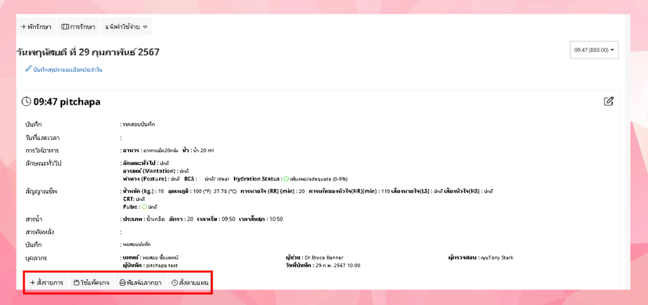 - การสั่งรายการทำได้ที่ด้านล่างของบันทึกการรักษาของแต่ละช่วงเวลา