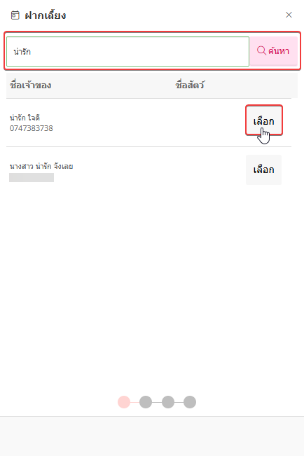 ระบบจะแสดงหน้าต่างเพื่อให้ผู้ใช้งานค้นหาสัตว์ที่ต้องการรับฝากเลี้ยง