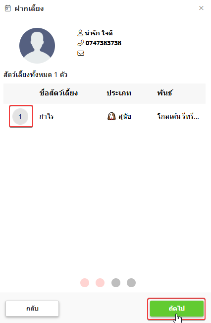 เมื่อผู้ใช้งานเลือกแล้ว ระบบจะแสดงหน้าต่างรายละเอียดการรับฝากเลี้ยง