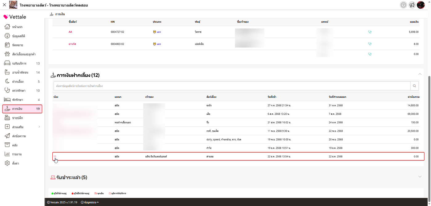 ระบบจะแสดงหน้าต่างข้อมูลการฝากเลี้ยง