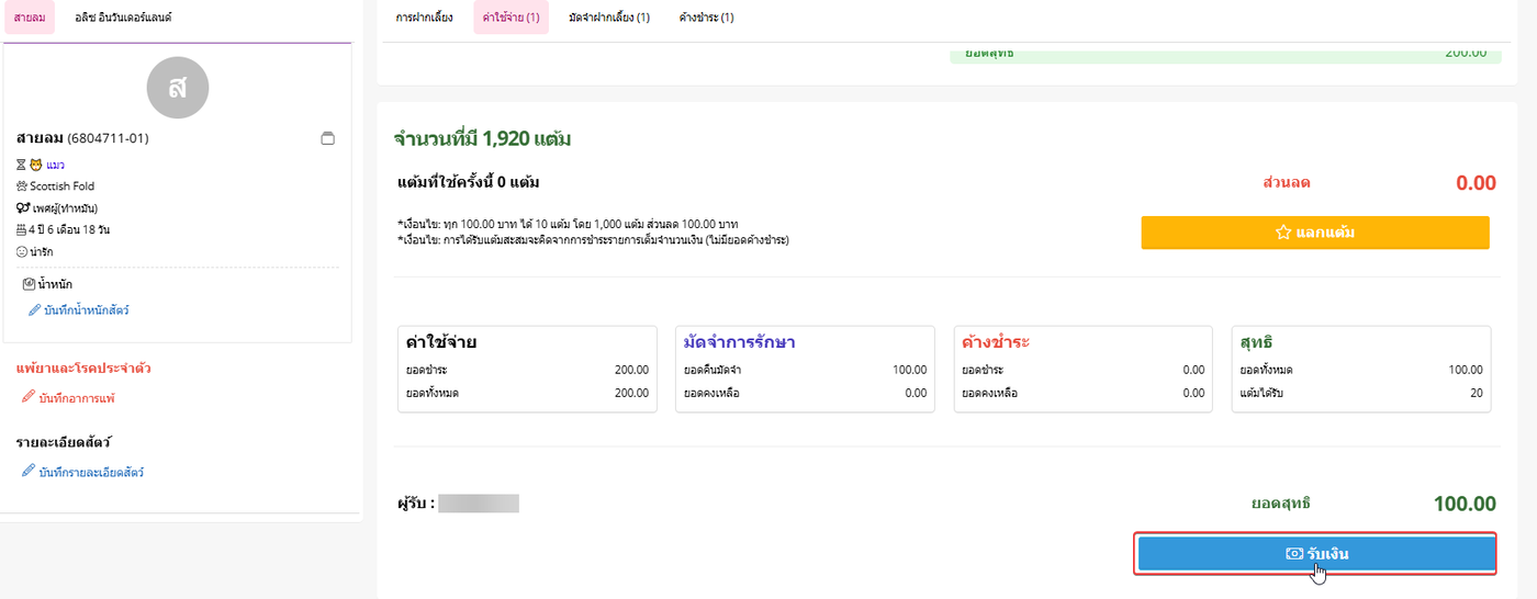 เสร็จแล้วคลิกปุ่ม "รับเงิน"