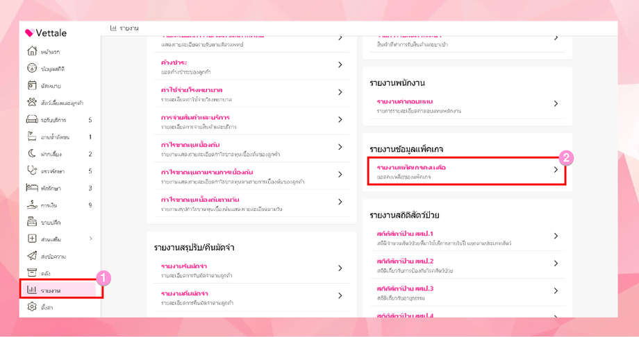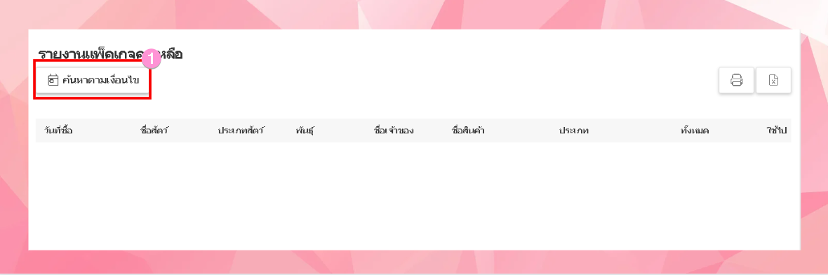 รายงาน > รายงานแพ็คเกจคงเหลือ
