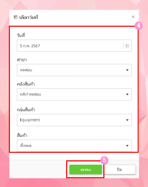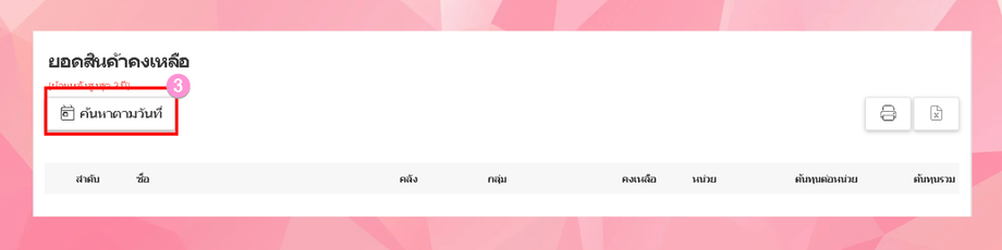 เลือกวันที่ ที่ต้องการตรวจสอบสินค้าคงเหลือ