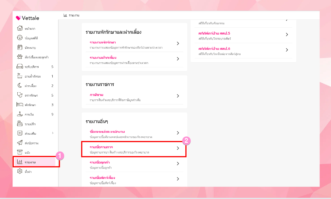 ไปที่เมนูรายงาน > คลิกรายชื่อรายการ