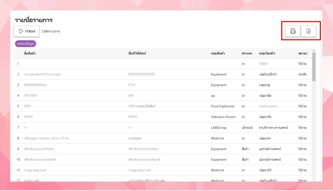 รายงานนี้ช่วยให้ผู้ดูแลระบบหรือเจ้าหน้าที่สามารถตรวจสอบและจัดการข้อมูลรายการยา, สินค้า, และบริการที่คลินิกมีได้อย่างมีประสิทธิภาพ