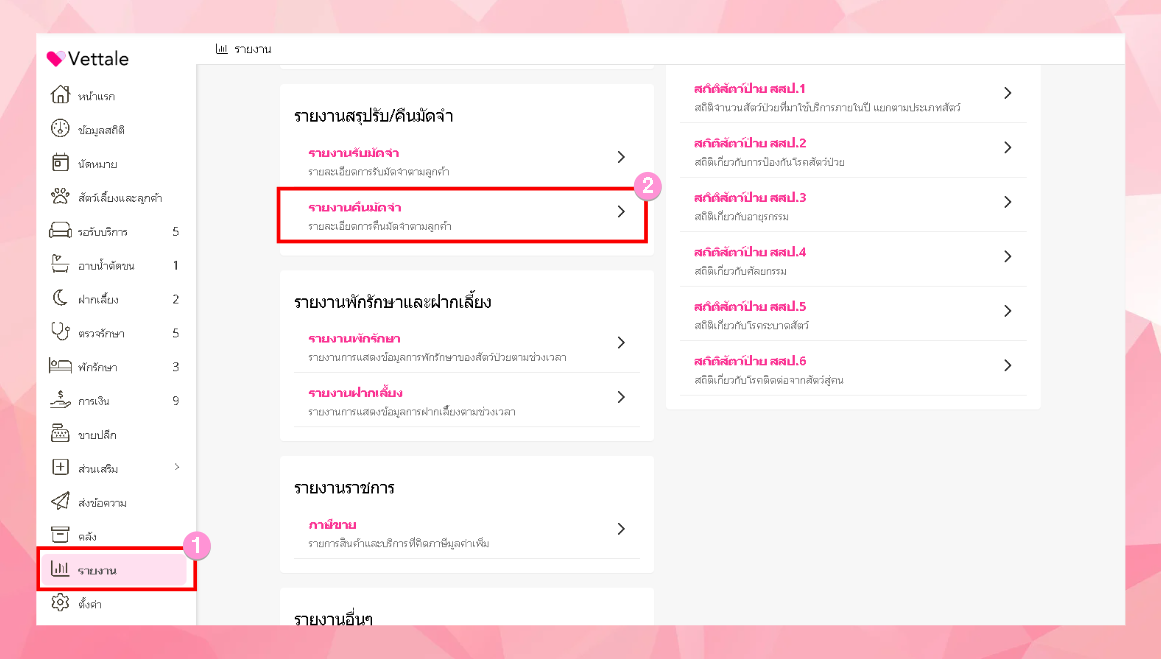 รายงาน > รายงานคืนมัดจำ