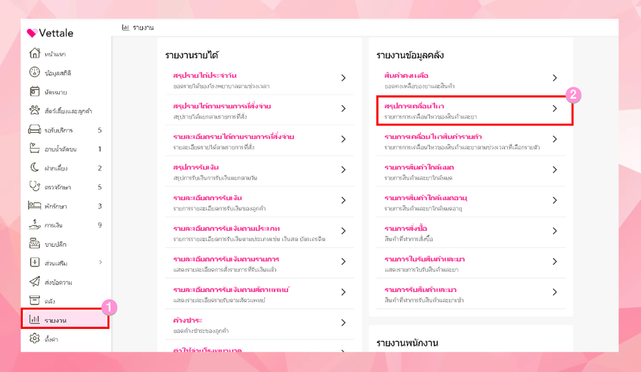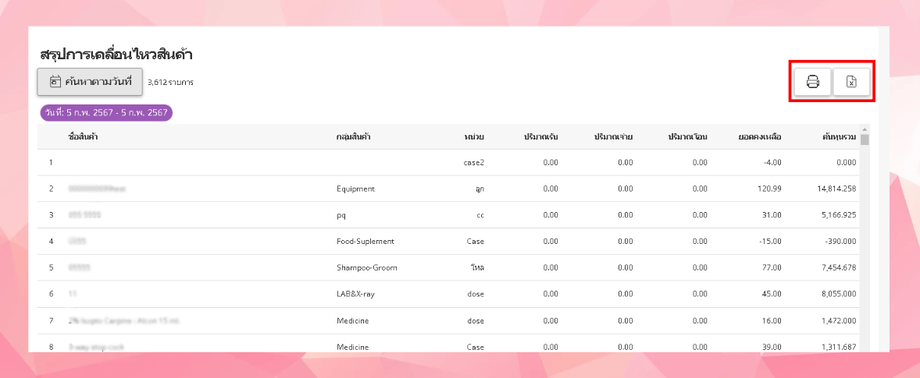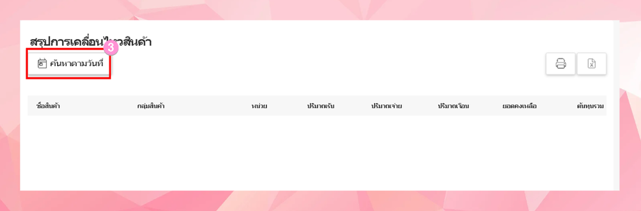 - คลิกเลือก สรุปการเคลื่อนไหวสินค้า