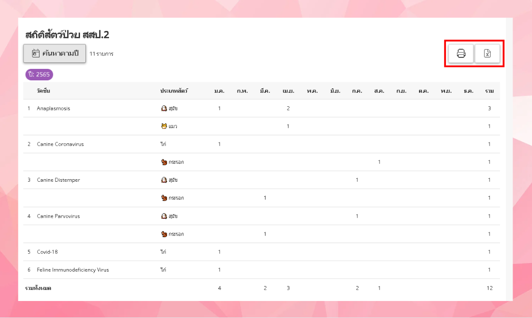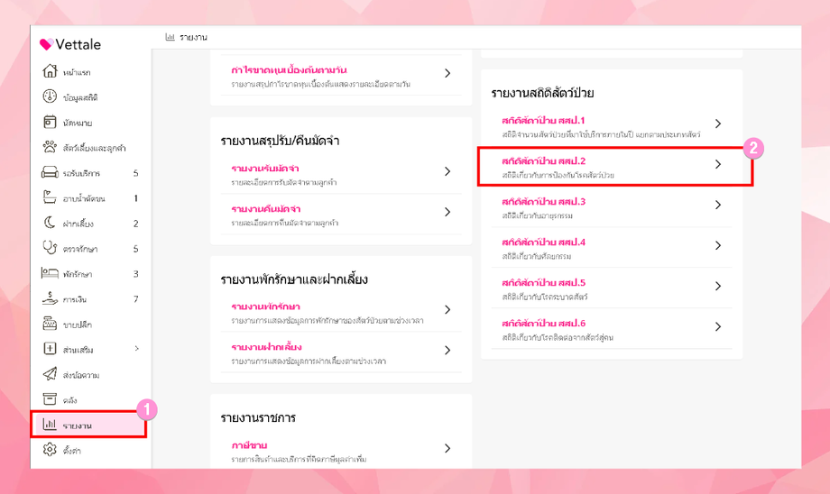 คลิกเลือก รายงานสถิติสัตว์ป่วย > สถิติสัตว์ป่วย สสป.2