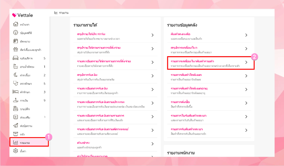 คลิกเลือก รายการเคลื่อนไหวสินค้ารายตัว