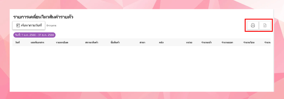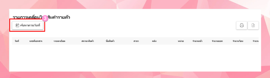 เลือกวันที่ ที่ต้องการตรวจสอบรายการเคลื่อนไหวสินค้ารายตัว