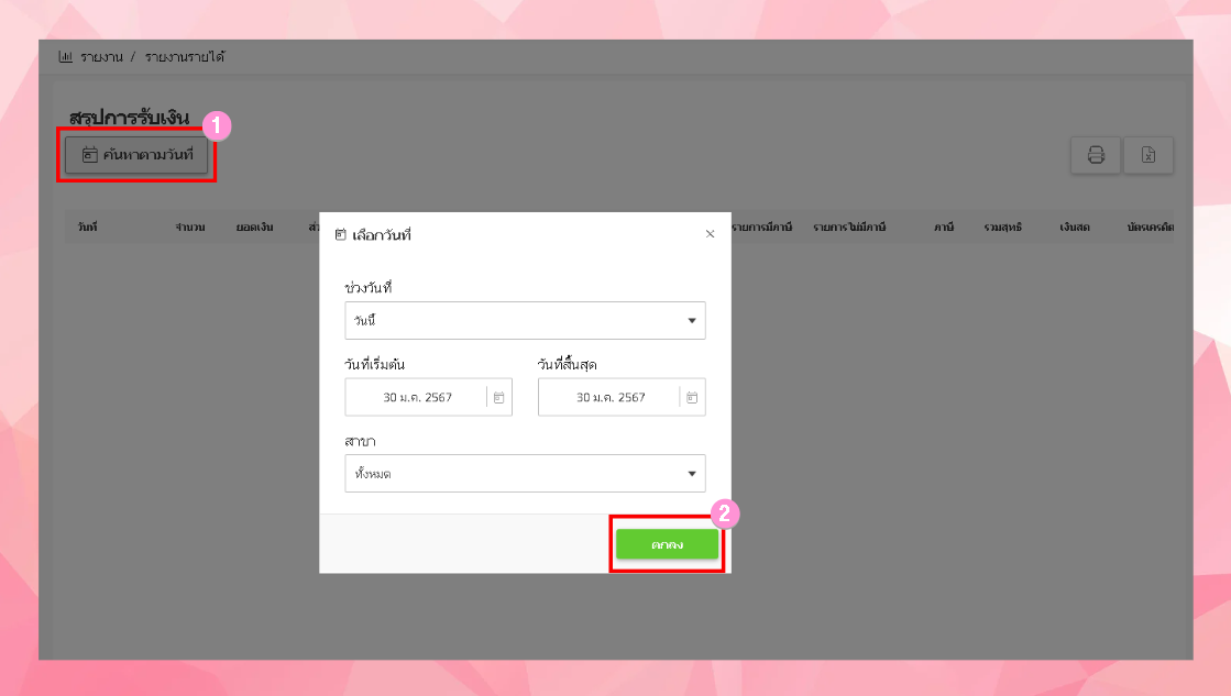 ค้นหาตามวันที่ กรอกข้อมูลที่ต้องการ
