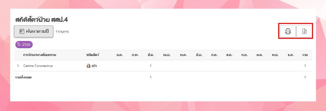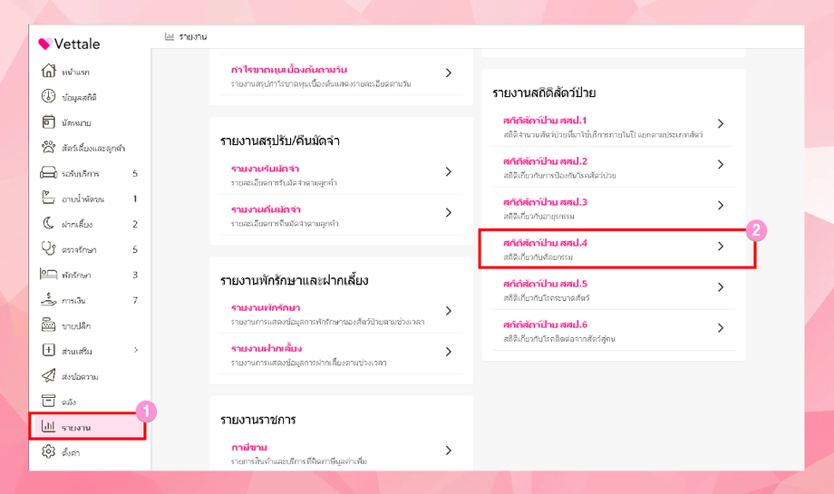 คลิกเลือก รายงานสถิติสัตว์ป่วย > สถิติสัตว์ป่วย สสป.4