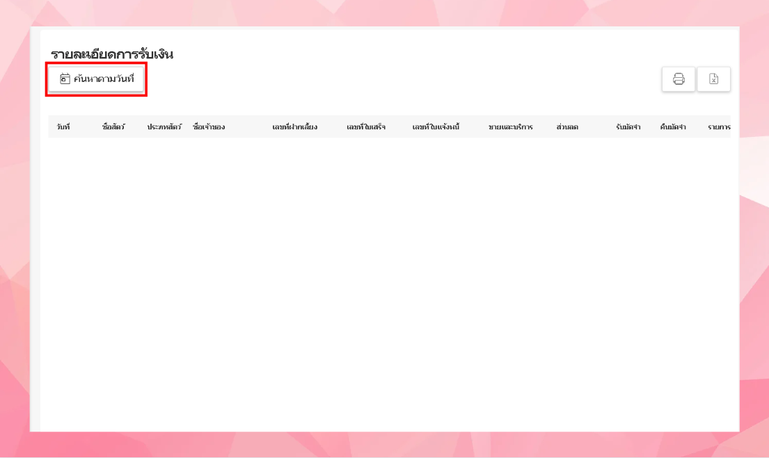 นี่คือระบบการค้นหารายละเอียดการรับเงินนั้นช่วยให้ผู้ใช้สามารถทำการค้นหาข้อมูลที่เกี่ยวข้องกับรับเงินของลูกค้าได้ โดยมีความสามารถในการกรองข้อมูลตามหลายเงื่อนไข ซึ่งทำให้การค้นหาข้อมูลเป็นไปอย่างมีประสิทธิภาพและรวดเร็ว