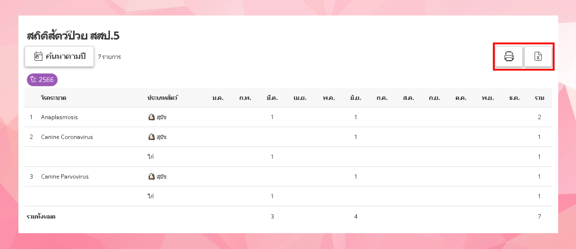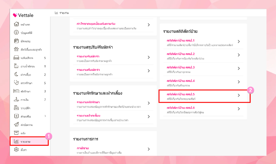 คลิกเลือก รายงานสถิติสัตว์ป่วย > สถิติสัตว์ป่วย สสป.5