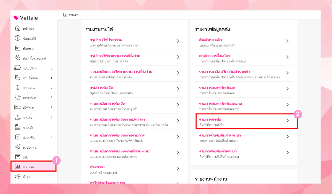 - ไปที่เมนูรายงาน