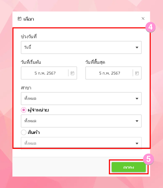 - ระบุช่วงวัน และ สาขา ที่ต้องการค้นหา