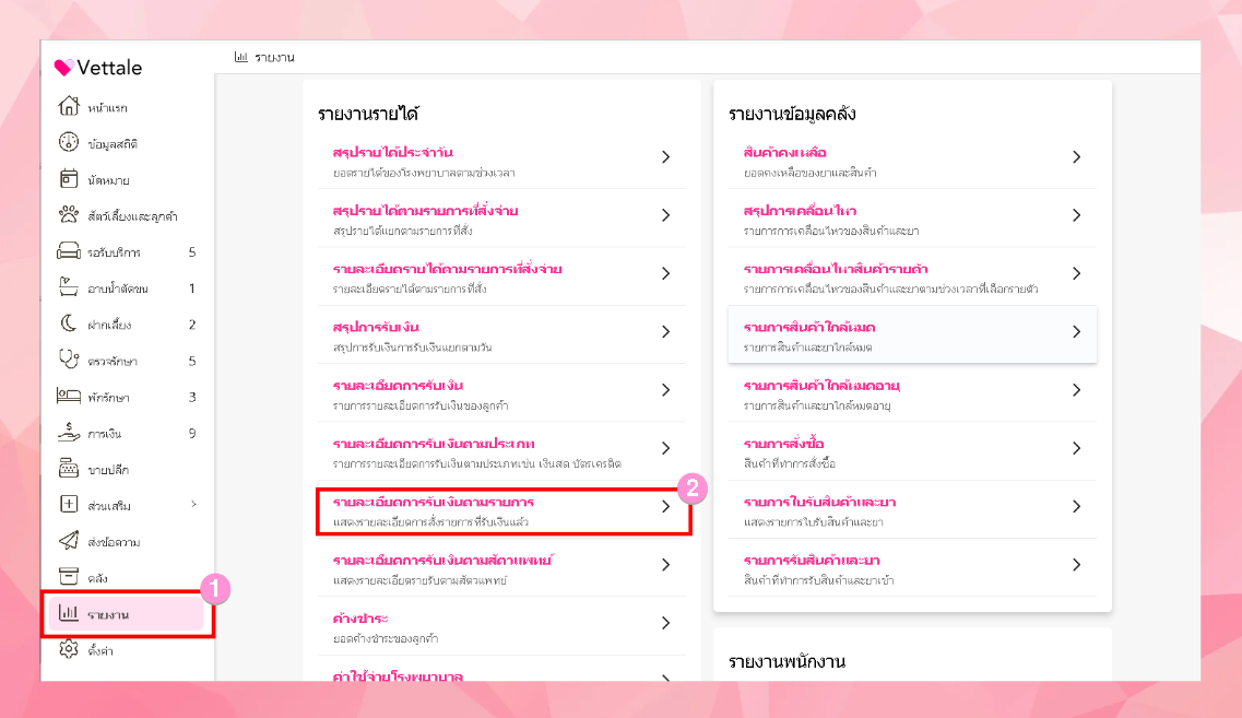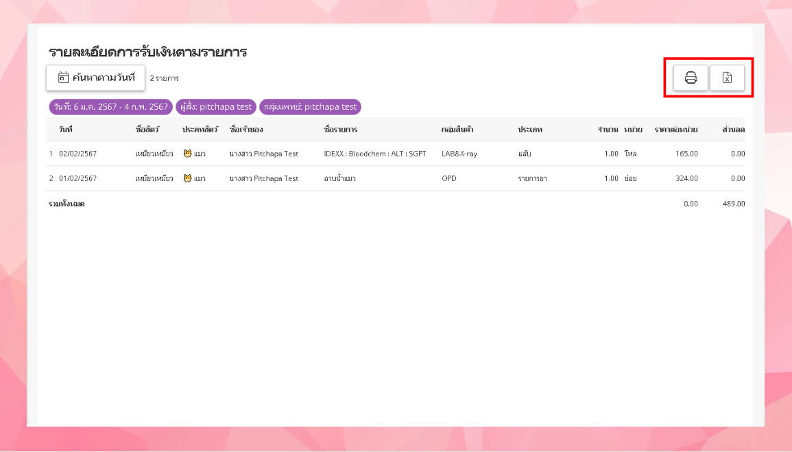 การทำงานของรายงานนี้เป็นเครื่องมือที่ช่วยให้ผู้จัดการหรือผู้ดูแลระบบทำการตรวจสอบและวิเคราะห์ข้อมูลการรับเงินแต่ละรายการของคลินิกหรือโรงพยาบาลได้อย่างสะดวกและรวดเร็ว