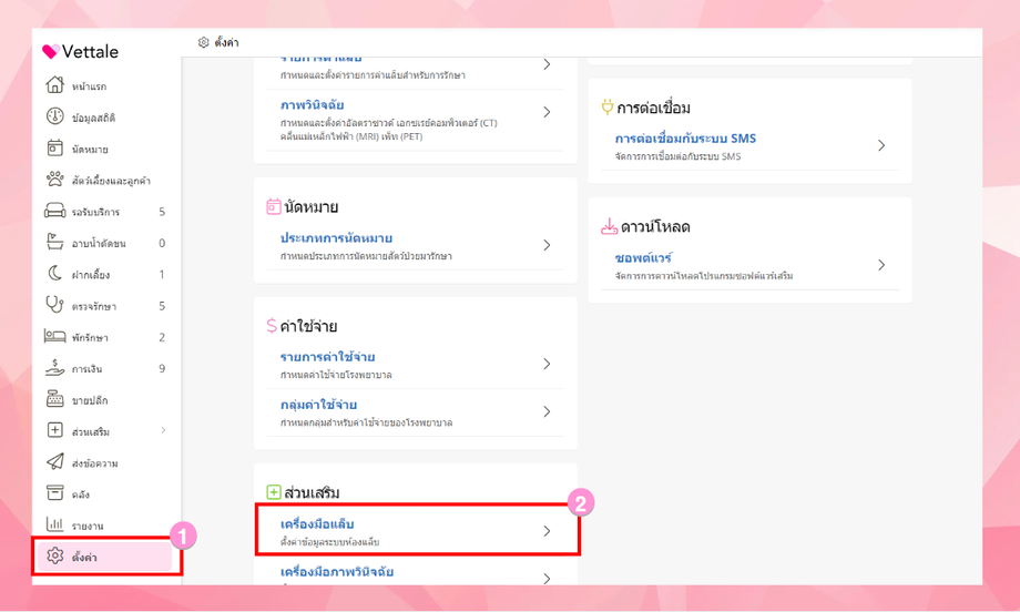 การใช้การตั้งค่าเครื่องมือแล็บ จะช่วยให้ผู้ใช้งานสามารถเลื่อเครื่องมือแล็บที่มีในโรงพยาบาลมาใช้ได้อย่างเป็นระบบและมีความสอดคล้องกับมาตรฐานทางการแพทย์ที่กำหนดไว้