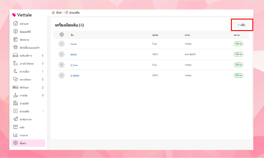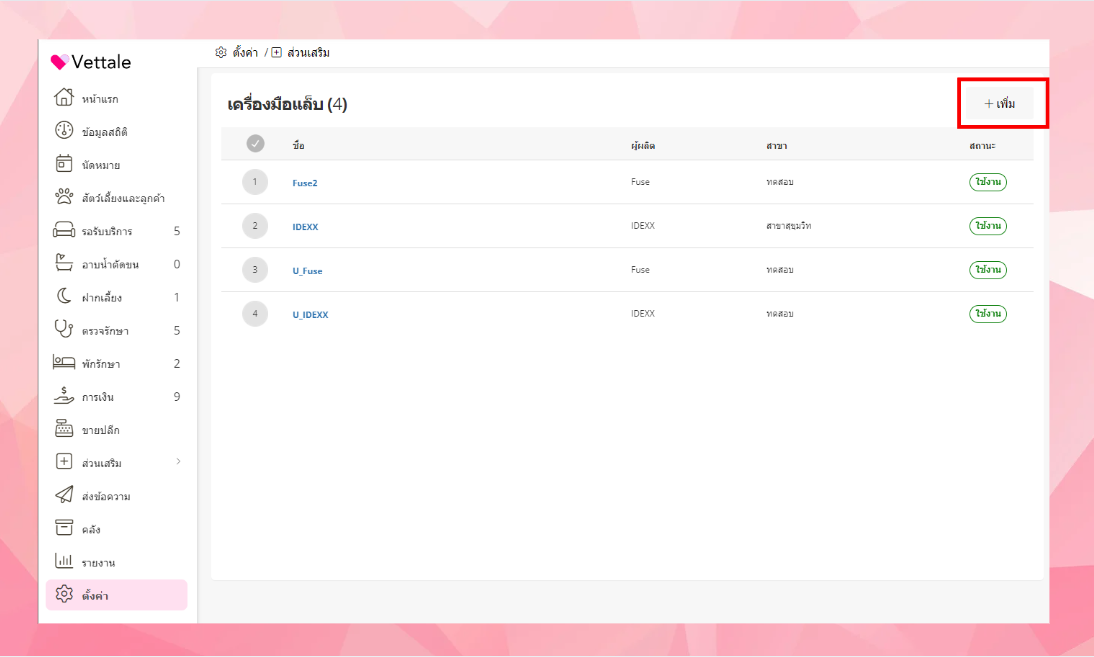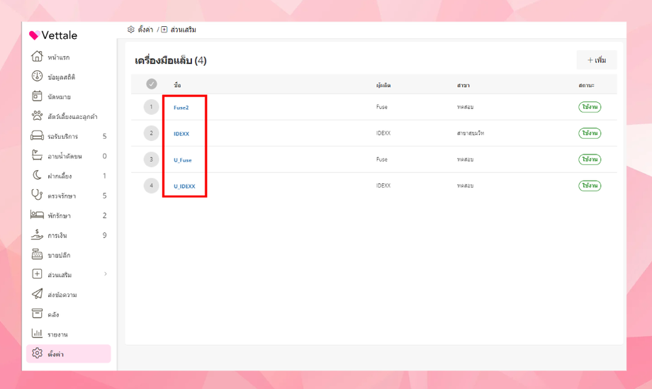 - เลือกเครื่องมือแล็บที่ต้องการเพิ่มค่าแล็บได้ที่ชื่อ