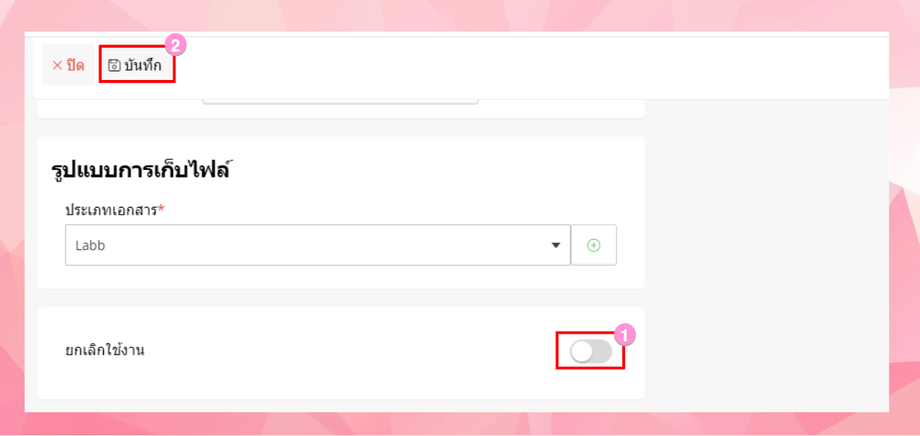 - ผู้ใช้งานเลือกเปิดการยกเลิกใช้งาน (หากยกเลิกแล้วระบบจะไม่ใช้งานข้อมูลที่ยกเลิกไป)