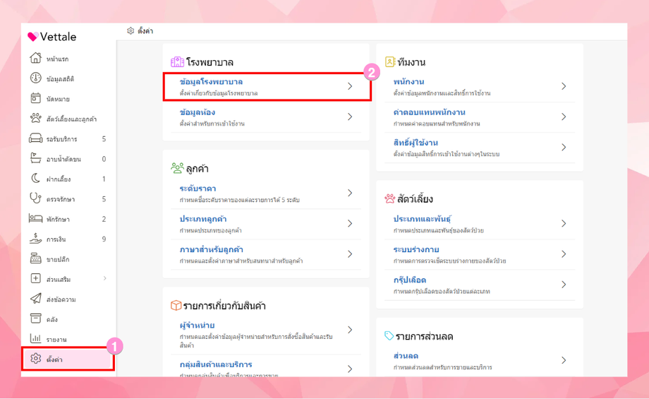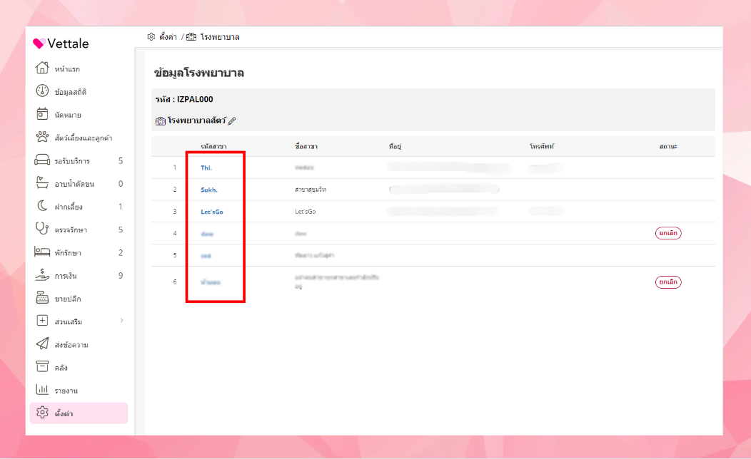 ในหัวข้อการตั้งค่าทั่วไปรวมถึงการกำหนดค่าสำหรับระบบการบริหารทั่วไปของโรงพยาบาล ภายในเนื้อหานี้ คุณจะได้รับข้อมูลเกี่ยวกับสาขาทั้งหมด ข้อมูลสาขา, ข้อมูลภาษีของสาขา, ข้อมูลใบอนุญาต, ระบบการชำระเงิน, ข้อมูลกิจการ และขั้นตอนการยกเลิกใช้งาน เราเน้นที่การให้ข้อมูลที่เป็นประโยชน์และคำแนะนำที่จะช่วยให้คุณใช้บริการของเราได้อย่างมีประสิทธิภาพ