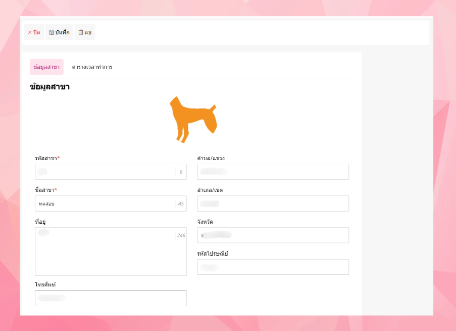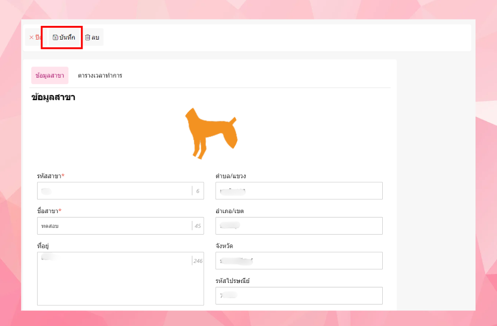 ระบบจะเข้าสู่หน้ากรอกข้อมูลสาขา