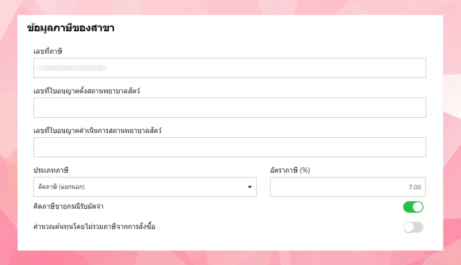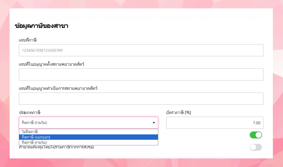 การตั้งค่าข้อมูลกิจการและการยกเลิกสาขา