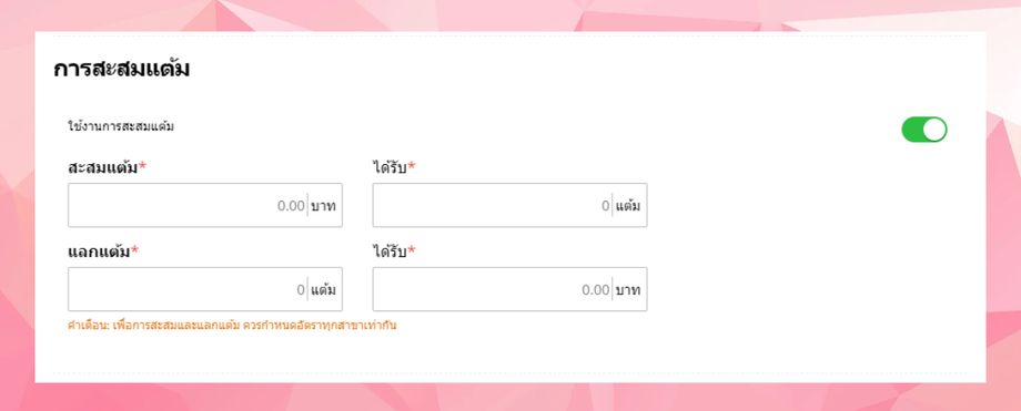 เมื่อเปิดแล้ว ผู้ใช้งานสามารถเลือกกำหนดการสะสมแต้ม และการแลกแต้มได้