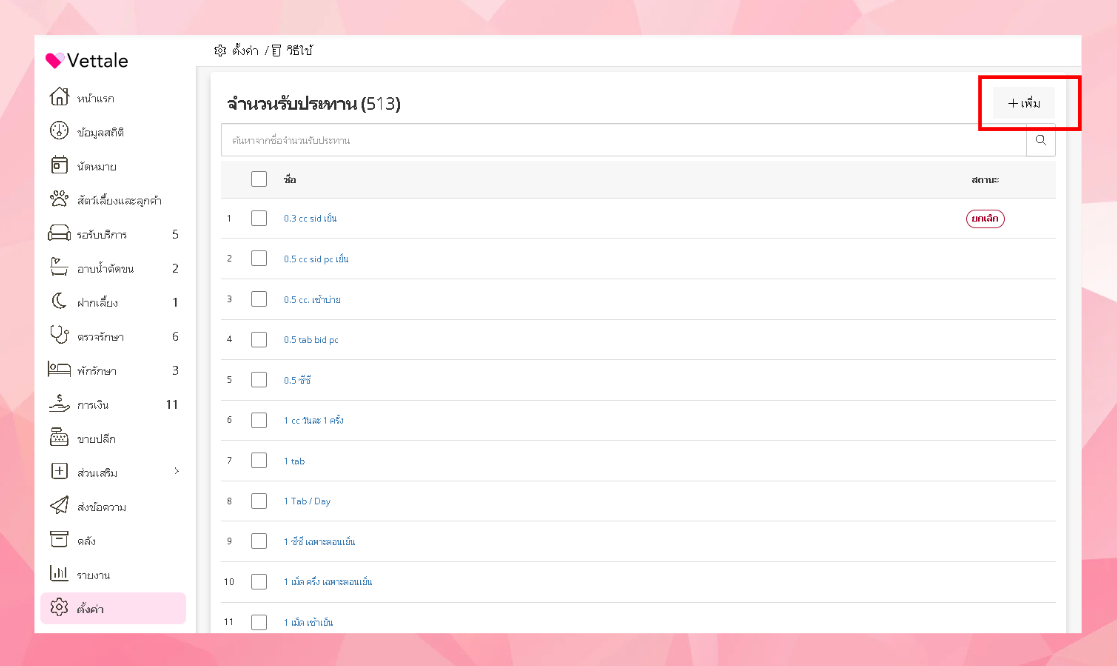 ระบบจะเข้าสู่หน้าเพิ่มจำนวนรับประทาน