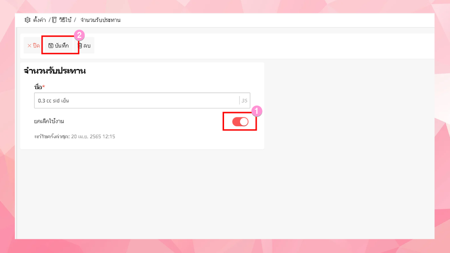 ผู้ใช้งานสามารถเลือกเปิดปิดการยกเลิกการใช้งานได้ (หากยกเลิกแล้วระบบจะไม่ใช้งานข้อมูลที่ยกเลิกไป)