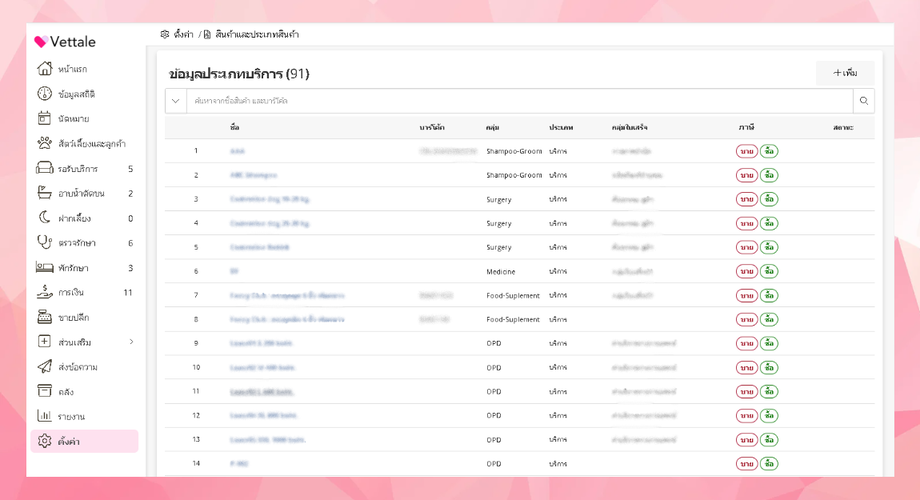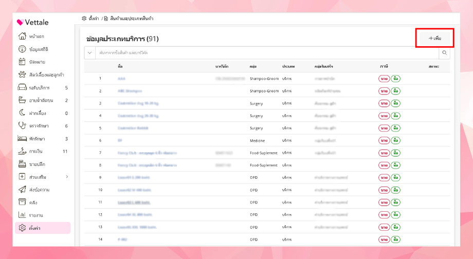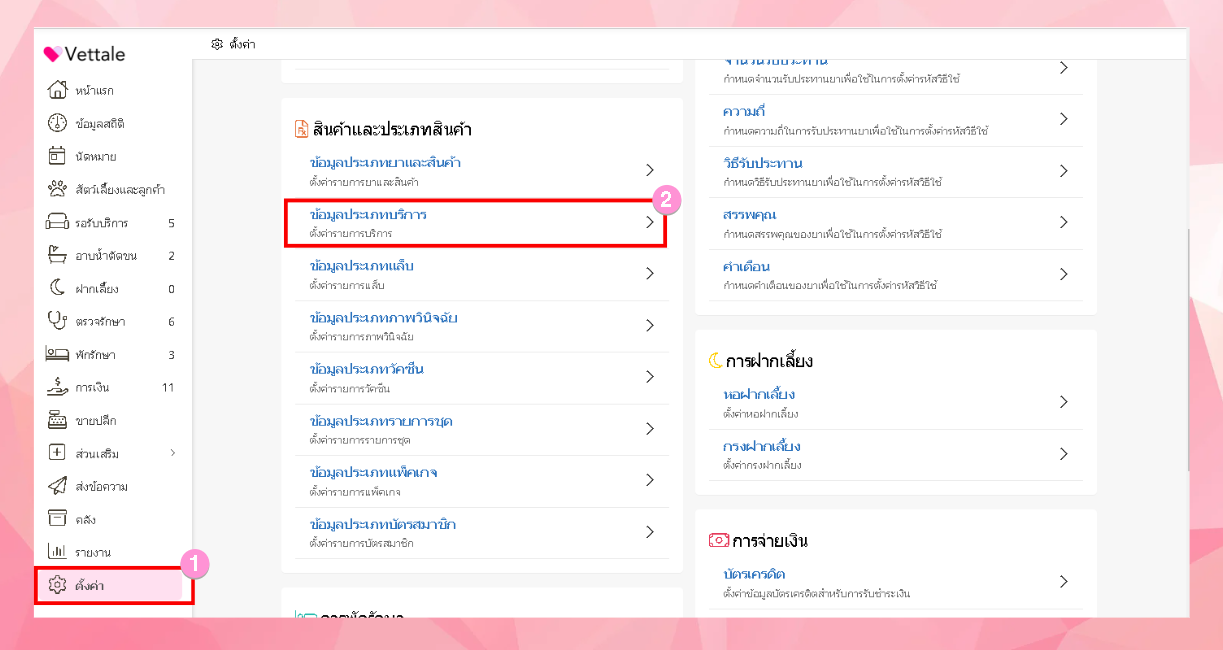 ในการตั้งค่าข้อมูลการบริการ ทำได้โดยการไปที่เมนูตั้งค่า > ข้อมูลประเภทบริการ