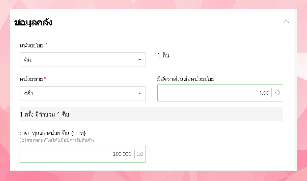 3.ราคาต้นทุนต่อหน่วย - ผู้ใช้งานสามารถกำหนดราคาทุนต่อหน่วยได้