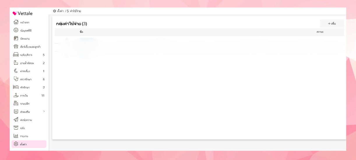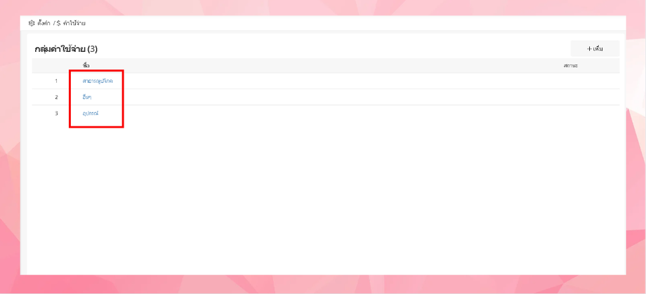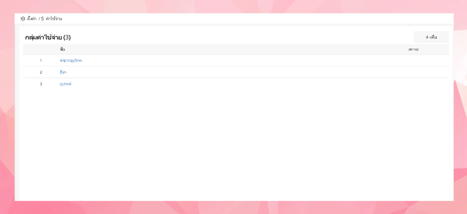 ระบบจะแสดงรายการกลุ่มค่าใช้จ่ายที่ผู้ใช้งานเพิ่ม