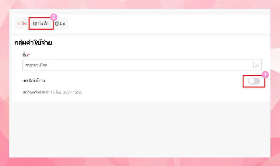 ผู้ใช้งานสามารเปิดปิดการยกเลิกการใช้งานได้ (หากยกเลิกแล้วระบบจะไม่ใช้งานข้อมูลที่ยกเลิกไป)