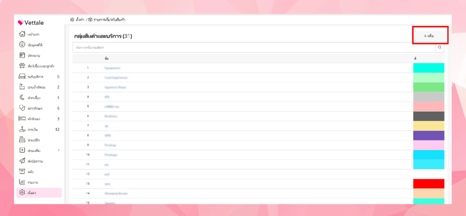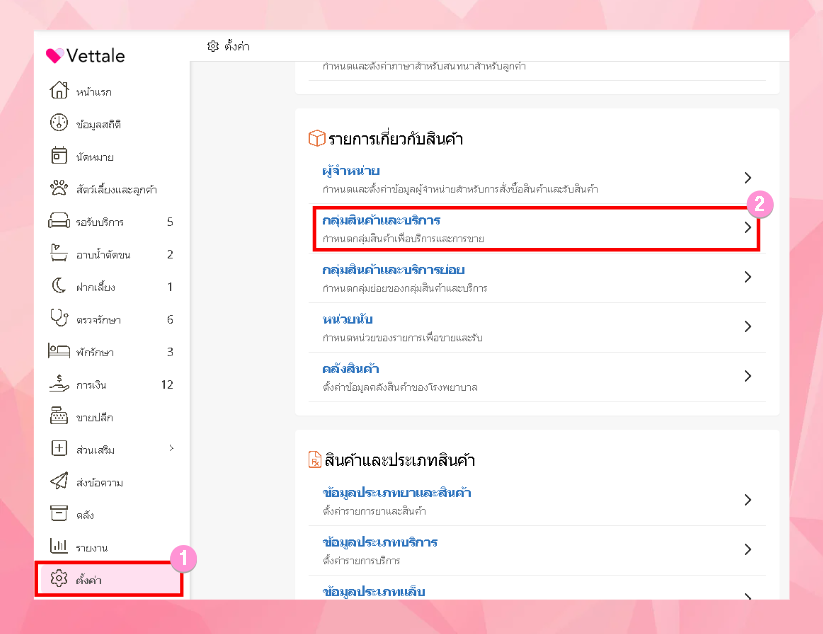 หากผู้ใช้งานต้องการตั้งค่ากลุ่มสินค้าและบริการ ทำได้โดยการไปที่เมนูตั้งค่า> รายการเกี่ยวกับสินค้า>กลุ่มสินค้าและบริการ