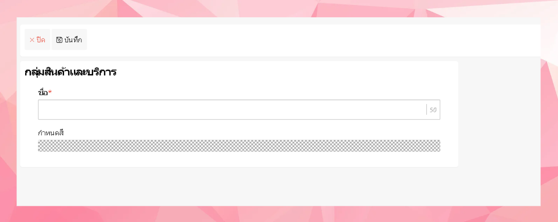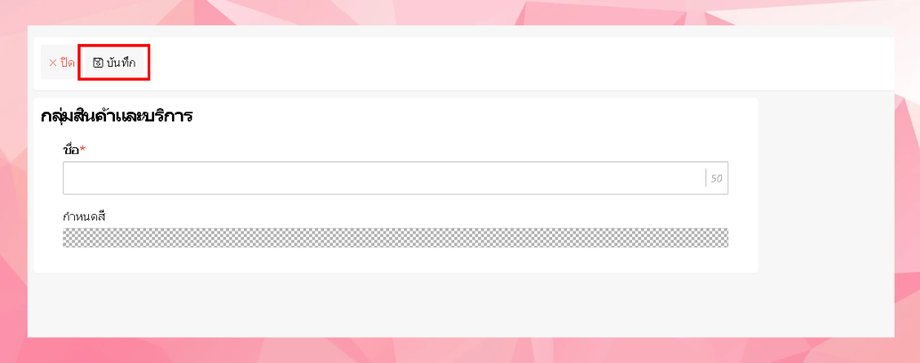 กรอกข้อมูลในช่องที่มีสัญลักษณ์ * สีแดง ให้ครบ และกำหนดสีของกลุ่มสินค้าและบริการ