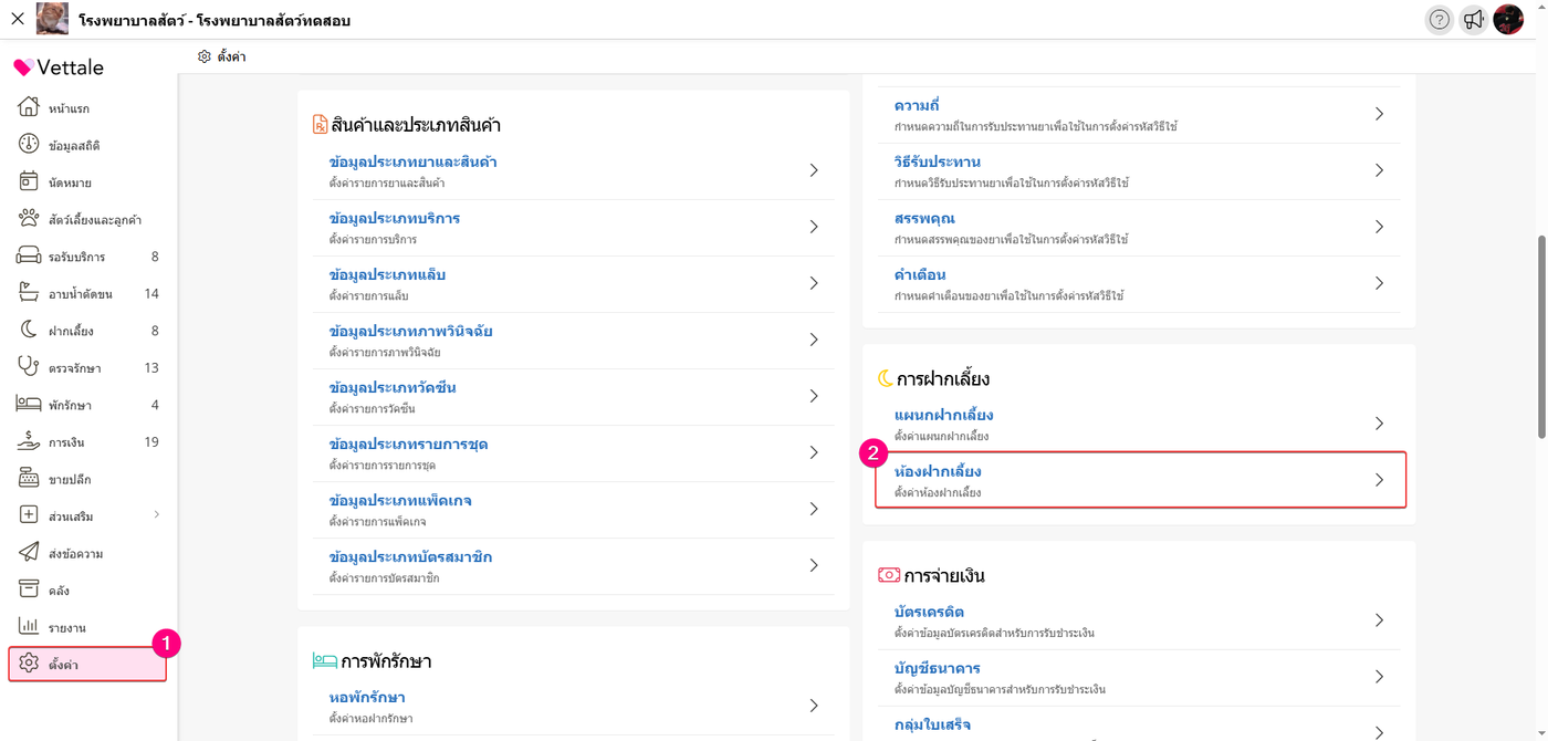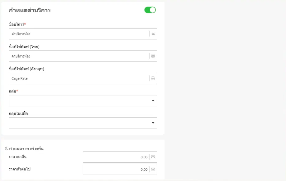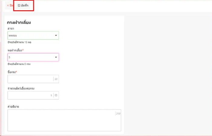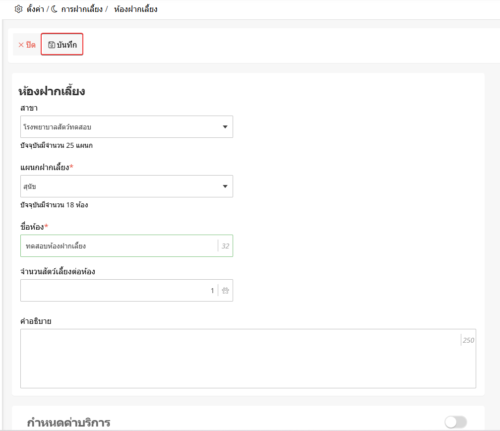 เมื่อผู้ใช้อยู่ในหน้าห้องฝากเลี้ยง ให้ผู้ใช้เลือกรายการที่ต้องการกำหนดค่าบริการฝากเลี้ยง