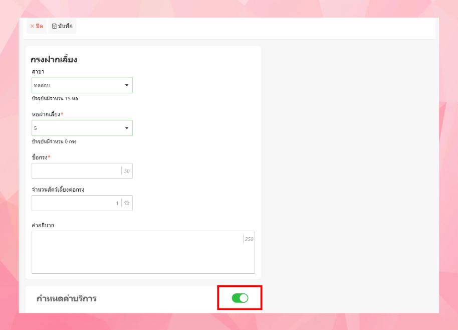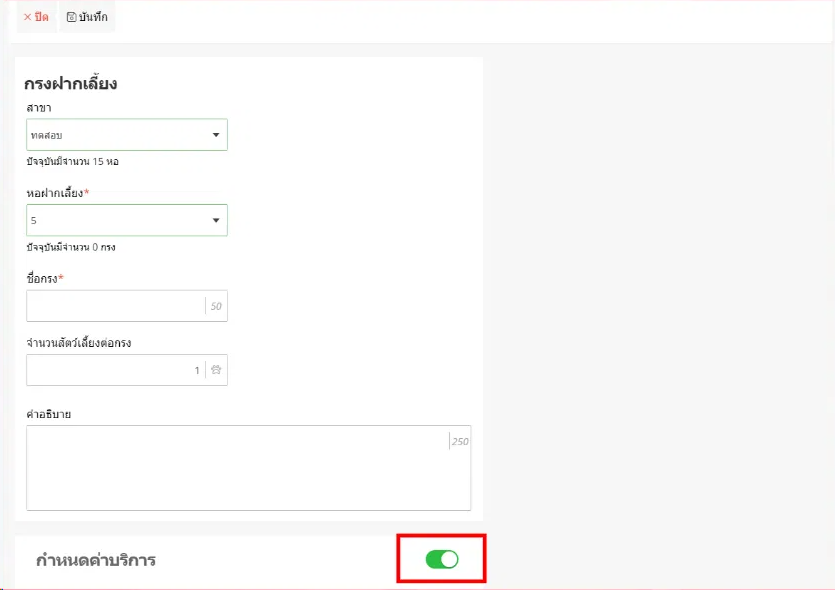 ให้ผู้ใช้งานเลือกเปิดการกำหนดค่าบริการฝากเลี้ยง